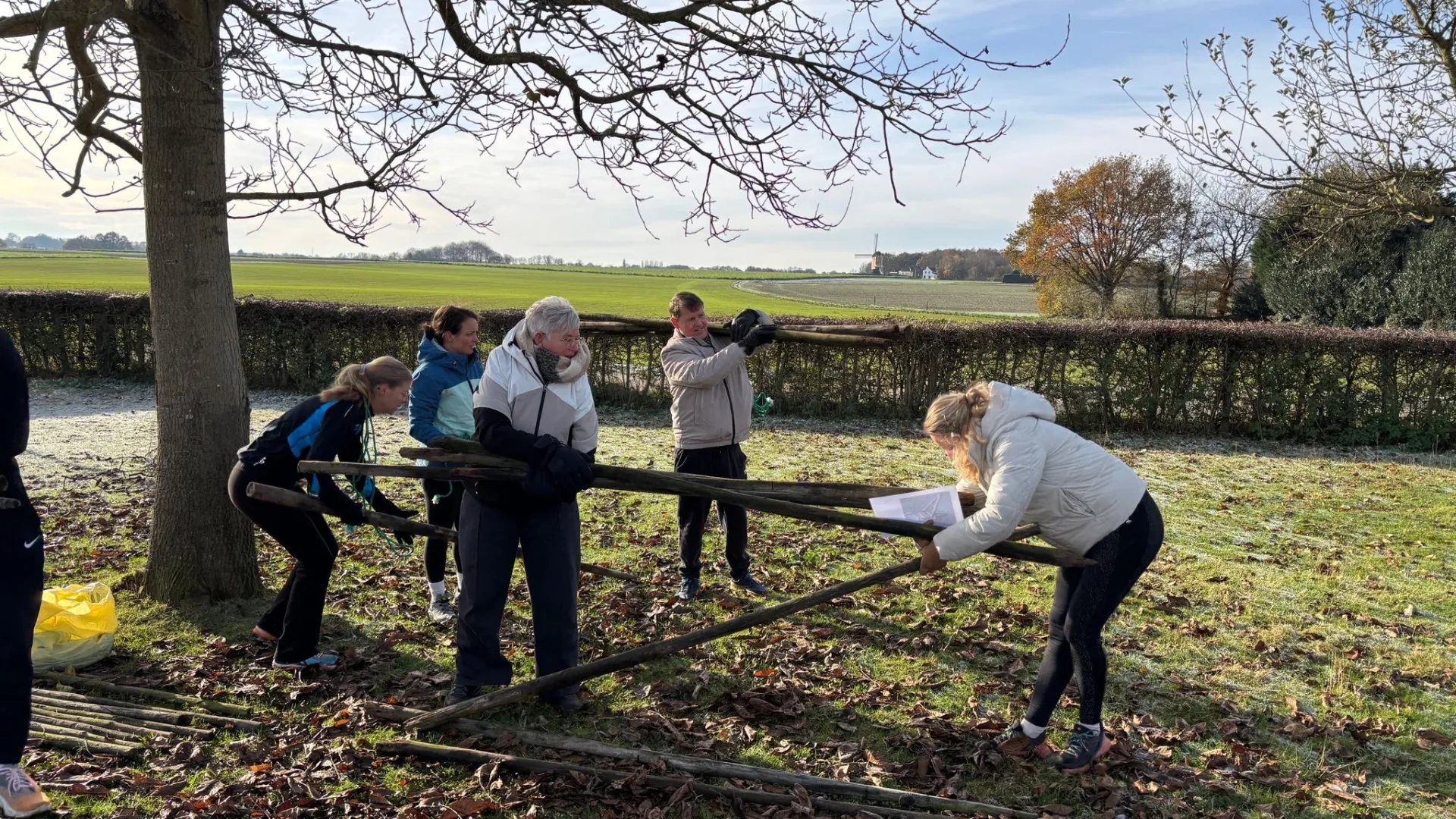 Tijdens de non-verbale opdrachten – het sjouwen van palen, sjorren van een bank, het bereiden van soep in de heksenketel en zelfs de sportieve bootcamp – ontstond een verrassende flow. Alsof iedereen elkaar al jaren op dit niveau aanvoelt. De kou zorgde voor rode neuzen, maar vooral voor meer kracht en verbinding.